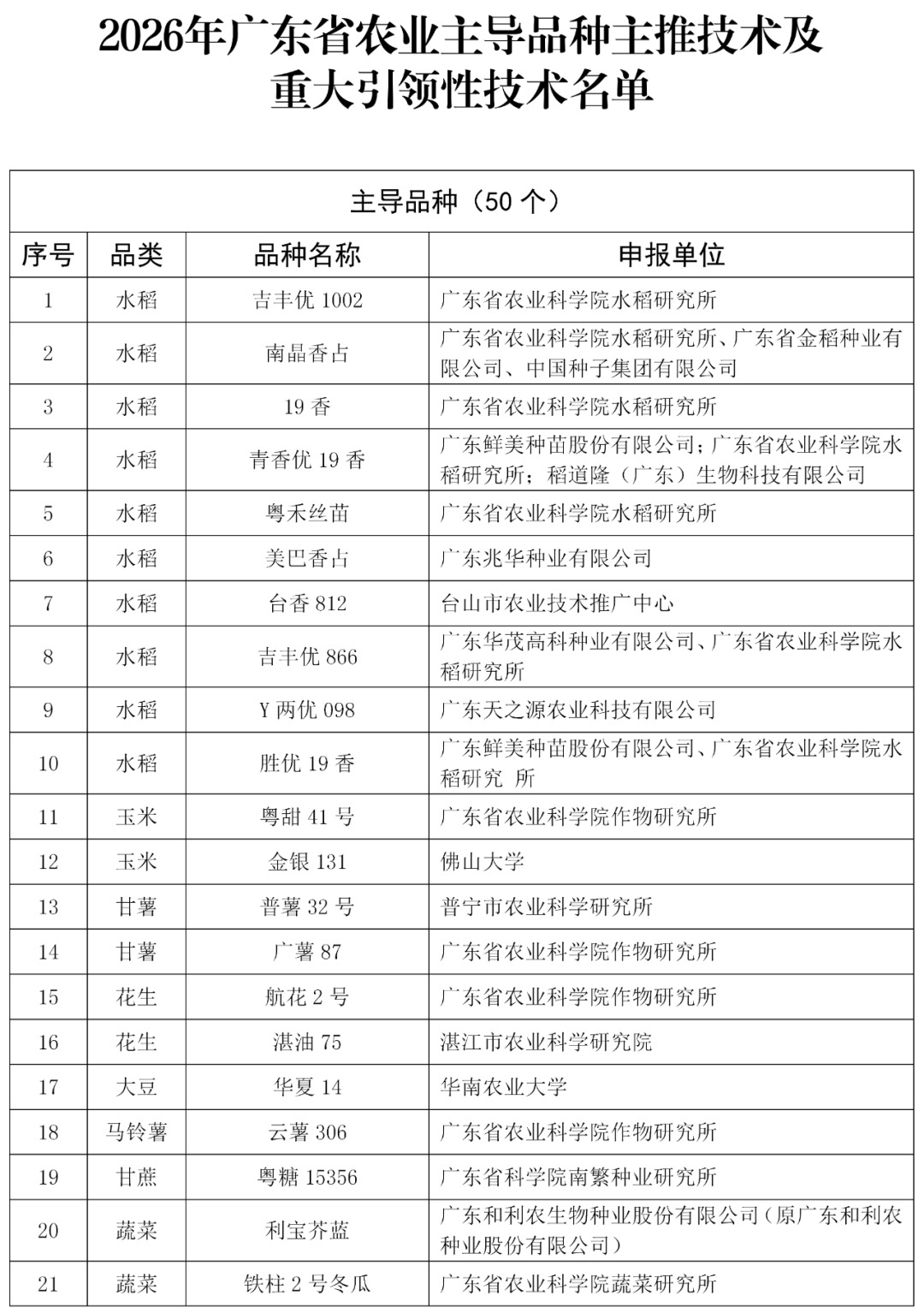 对于2026年广东省农业主导品种主推期间及紧要引颈性期间名单的公示