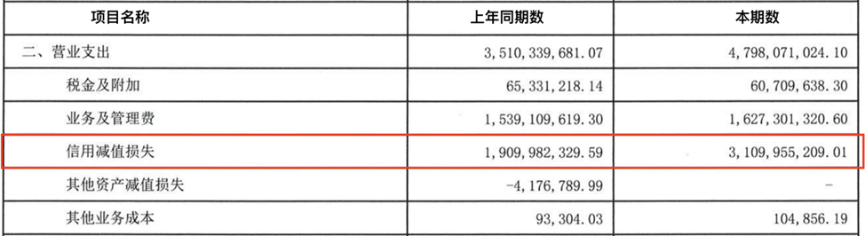 对于净利润的急剧滑坡,仔细讨论财报后不难发现,主要原因是营业开销方针下的信用减值损失大幅加多所致。数据傲气,在2024年前三季度,该行信用减值损失共计31.1亿元,而上年同时仅为19.1亿元,一年间加多了整整12亿元,增幅高达62.83%。